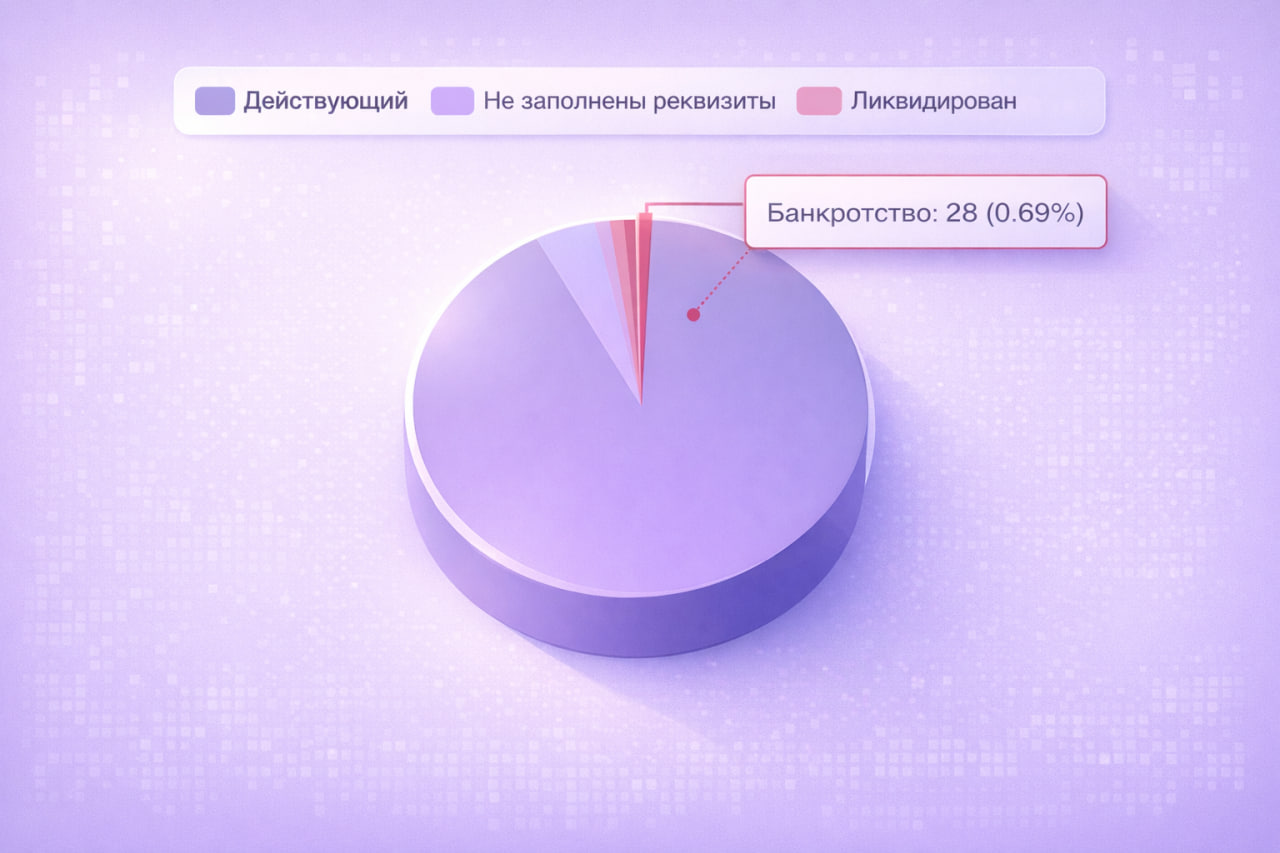 После выгрузки получилось почти 5 000 компаний. С большей частью базы уже давно не работали и возник вопрос: все компании сейчас действующие?