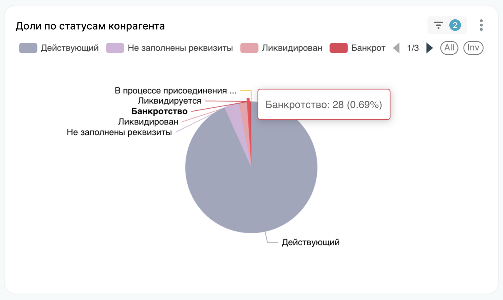 Интеграция с DaData позволила оставить в работе только действующие компании. И дала возможность проверять статус компании в нужный момент, например перед заключением договора.
